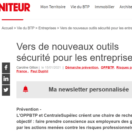 La Chaire OPPBTP Centralesupelec au menu de Preventica